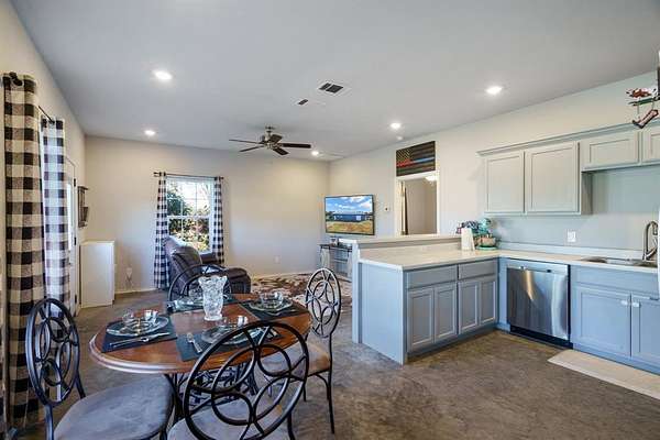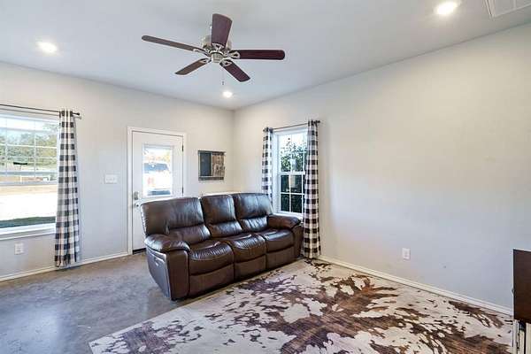 Experience peaceful country living on 8 beautiful acres with this versatile barndominium property--perfect for hobby farmers, car enthusiasts, or anyone seeking wide-open space and privacy. The residence offers 750 sq ft of comfortable living space with a well-designed 1-bed, 1-bath layout, an inviting living room, and a functional kitchen--ideal for full-time living or a weekend retreat.