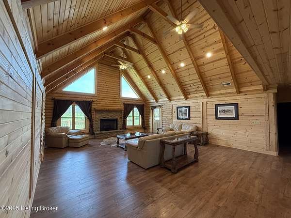 STOP! Hold your HORSES Right Here!!! This immaculate Newly Build Log Home is situated in the Middle of Horse Country and is perfectly set up for a small Horse Farm. This Amazing Log home features a Spacious Open Floor Plan with loads of amenities! The 1st Floor Features a Magnificent Great Room with Tall Cathedral Ceilings and a Fireplace. The Kitchen is located off the rear of the Great Room with a Dining Area, Lots of cabinets & Granite Counters. Off the South end of the home is the Primary Bedroom with Primary Bath. To the north of the Great room are 2 additional Large Bedrooms and a 2nd Bath.The36X36 Horse Barn Features 3 Stalls, a Wash Bay, a Tack Room, 2 10' Sheds and a Run-in Shed. Newly Fenced Paddocks. Call NOW To view this Amazing Property that is move-in ready!