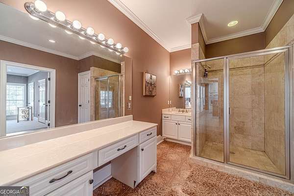 - Bookcases, Double Vanity, High Ceilings, In-Law Floorplan, Master On Main Level, Separate Shower, Tile Bath, Vaulted Ceiling(s), Walk-In Closet(s)