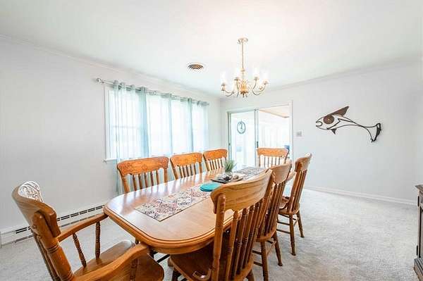 Located on Rock Hole Creek, with over 900 feet of protected waterfront, this attractive and well maintained property offers one floor living and spectacular views of Rock Hole Creek and Chesapeake Bay. The house is solid throughout, constructed of brick with 2077 square feet of living space. Three bedrooms with ample closet space, three full baths, spacious living and dining rooms, plus a very pleasant sun room allows for very comfortable living as either a full or part time residence for those seeking waterfront living in a very private, peaceful setting. Because of its immediate move in status, the property would also make a fantastic short term rental opportunity. There is a wood burning fire place on the main floor and another one in the partial basement. Windows and sliding doors were replaced in 2023, and a new floor in the sun room was installed in 2024. A two car garage and a shed provide space for for additional storage for vehicles, lawn equipment, fishing and crabbing gear and water toys. There is plenty of depth at the end of the dock to tie up your boat or wet a line. Some furnishings/equipment will convey. For additional privacy, there are two separate and adjacent lots which can also be purchased. One is 3.91 acres, and the other is 3.14 acres. Just outside the historic town of Reedville, 686 Smith Point Road is an outstanding waterfront retreat.