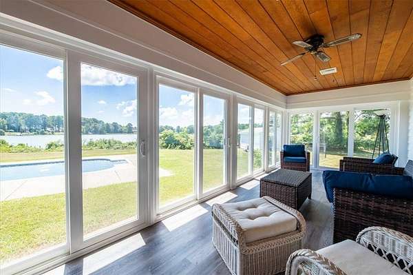 - Bay Window, Bedroom On Main Level, Breakfast Area, Cable Tv, Ceiling Fans, Dining Area, Eat In Kitchen, Fireplace, French Doors Atrium Doors, Laminate Counters, Main Level Primary, Separate Formal Dining Room