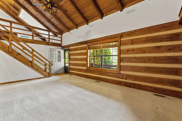 Brand new carpet throughout home just done and new 6 ft wood privacy fence installed ***Charming Cabin on 4 Acres surrounded by nature. Check out this fantastic 3-bedroom, 2.5-bath cabin perched atop a peaceful knoll, offering stunning views of the surrounding mountains. Whether you're sipping your morning coffee or winding down at sunset, the front porch swing is the perfect spot to soak in the serene setting. This property sits on 4 private acres and features a fenced backyard, two storage sheds, and a roof that was replaced just a year ago. Inside, a little TLC and some updates will go a long way making this the ideal opportunity to create your forever home or a profitable short-term rental. Whether you're looking for a mountain getaway, a full-time residence, or an investment property, this cabin checks all the boxes!