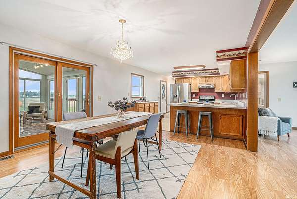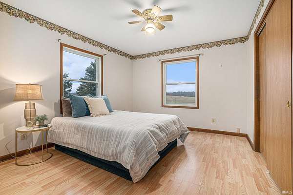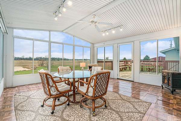 This 4 bedroom, 3 bath home has a walkout lower level and sits on almost 8 acres of land with a pond. You'll love the flow of this home and the gorgeous views of the pond from the 4 seasons room. Large primary bedroom with walk-in closet. 2 other bedrooms on the main level have large closets. Enjoy the great kitchen with views outside, the huge pantry and all appliances remain. Washer and dryer are on the main level. The lower level has a kitchen sink and counter tops, french doors to outside patio area under 4 seasons room, living area, 4th bedroom and 3rd bathroom. Could make a wonderful apartment. Lots of storage. Geothermal heat system. Garage is oversized! Buyer to check all room dimensions and schools. Pre-lim title work is complete with Fidelity National Title in Warsaw.