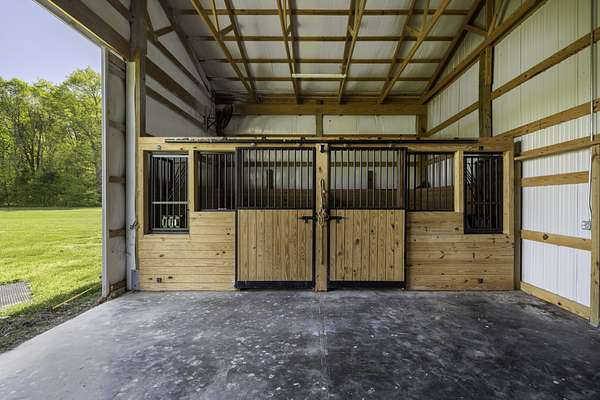 A remarkable sixty by eighty-foot barn with a forty by eighty-foot interior includes two horse stalls, a tack room, and an office space. It can easily transform into an entertainment venue, car showroom, creative studio, or business headquarters. The potential is limitless.