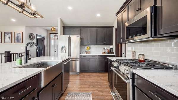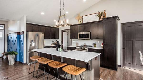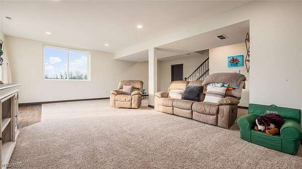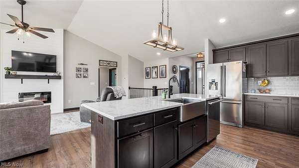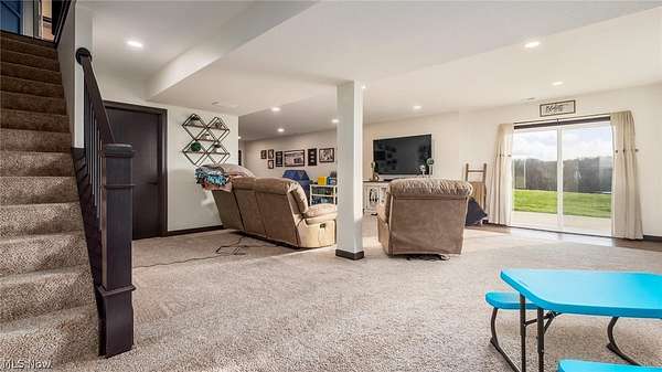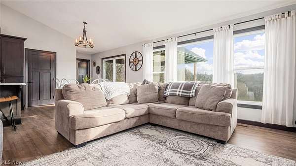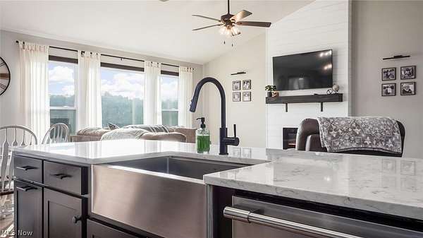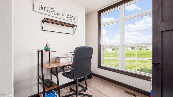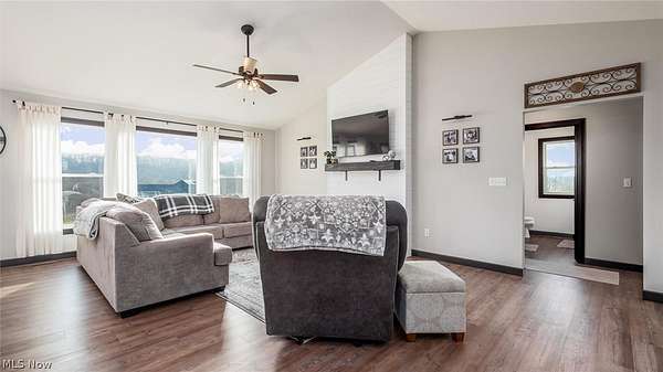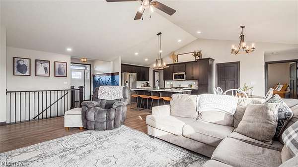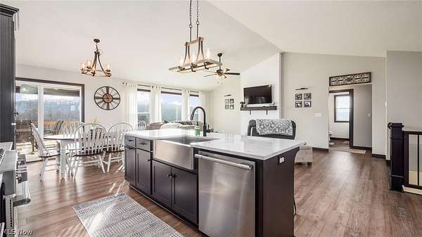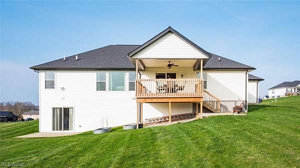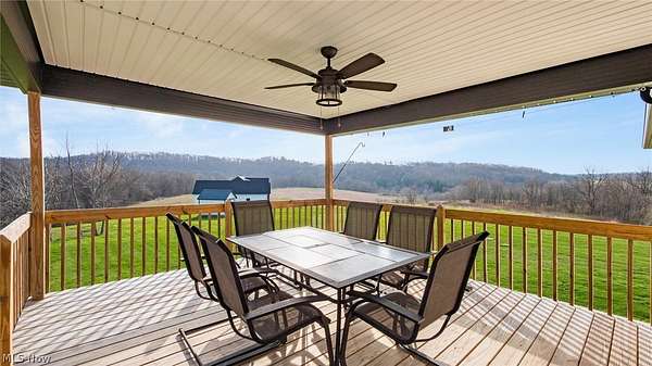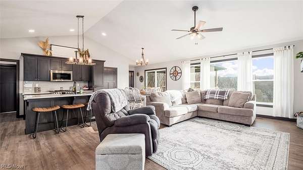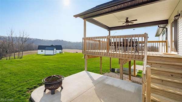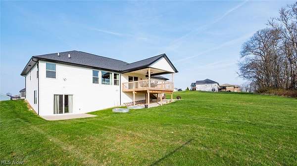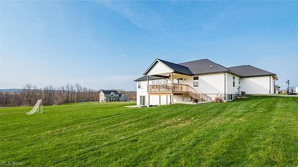Welcome to this stunning custom-built ranch, completed in 2021, offering the perfect blend of modern style, thoughtful design, and functional living space. With 4 bedrooms and 3 full bathrooms, this home sits on 1.67 acres in the highly desirable East Muskingum School District. The heart of the home is the stunning kitchen, featuring quartz countertops, a stylish tile backsplash, gas stove, walk-in pantry, and custom Amish-built cabinets that showcase exceptional quality and craftsmanship. The open-concept living room boasts vaulted ceilings and an electric fireplace, creating a warm and inviting space for relaxing or entertaining. The main level offers a spacious primary suite with a walk-in closet, and gorgeous primary bathroom with a double vanity and modern tiled shower. For added convenience, the laundry room is located just off the primary bathroom. You'll also find two additional bedrooms and a full bath on the main floor, along with a versatile office or flex space, perfect for working from home or a playroom. The finished walk-out basement expands your living space with 9+ foot ceilings, an additional bedroom, full bathroom, storage space and plenty of room for entertaining, relaxing, or hosting guests. The oversized three-car garage provides plenty of room for vehicles and storage, and is complemented by a functional mudroom/cubby area just inside the home to keep everything organized. Enjoy peaceful country living from the covered deck overlooking your property, ideal for morning coffee or evening gatherings. This move-in ready home truly checks all the boxes with quality craftsmanship, modern finishes, and a layout designed for everyday living.