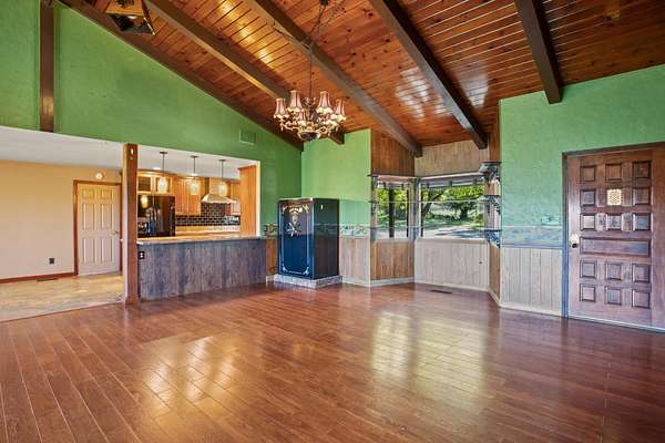 - Beam, Breakfast Bar, High Ceiling, Pantry, Vaulted Ceiling
