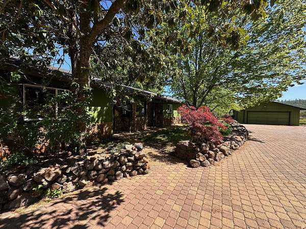 Hwy 44 east, right on Black Butte Rd, left on Alpine. When you pass through the 2 trees in the road, turn left at dirt road with mailboxes. Driveway is at the end of the road on the right.