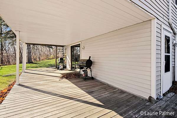 Welcome home to 6867 Centerline! This custom-built 3-4 bedroom, 3-bath home is perfectly situated on 3.98 peaceful acres just outside of Saranac. The main floor offers two bedrooms, an updated full bathroom, main-floor laundry, and a spacious kitchen featuring quartz countertops, an island with snack bar, and open sightlines to the dining area and living room. A stunning massive stone fireplace with pellet stove anchors the main living space. Enjoy year-round natural light in the large four-season room with skylights. A composite deck extends from the front of the home, while a stamped concrete patio on the opposite side provides additional outdoor entertaining space. Upstairs, you'll find a generous loft with excellent storage along with a beautiful primary suite complete with custom cabinetry, vaulted ceilings, and a fully updated bathroom featuring a dual vanity and tiled shower. The walkout lower level adds even more living space with a full kitchen, living room with gas fireplace, full bathroom, and a non-conforming bedroomideal for guests, in-laws, or multi-generational living. A covered patio sits just outside for quiet relaxation. This property is packed with extras, including: " Hardwired full-home generator " 60' x 40' pole barn " New well " Newer Pella windows " Newer central air " Natural gas " Vaulted ceilings in the great room " Lovely landscaping with a beautiful retaining wall A rare find with land, space, updates, and outbuildingsdon't miss this one!