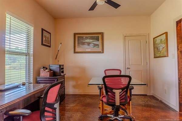 Motivated Seller USDA eligible!! Welcome to this charming country home! This well maintained full brick one level home offers the perfect blend of charm and modern convenience,nestled on an impressive 14.2 acre lot.This home features 3 bedrooms ( one being used as an office) and 2 baths.The primary bedroom suite offer a generous retreat with a walk in shower and huge walk in closet. Lots of storage in home . It even has a janitors closet. Kitchen opens to living with granite countertops, plenty of cabinets,large island with large walk in pantry.Spacious utility room for washer and dryer and room for extra refrigerator and freezer. Beautiful stained concrete floors throughout home. Living area has 3 3x5 storm windows that let in natural light. Double front doors lead out to a large covered front porch that overlooks a stocked pond! Covered patio in back to enjoy the country sunsets! Lots of mature trees! Property has 30 x 50 shop with built in storm shelter. 12 1/2 x 50 additional covered storage. Lean too on south side of shop. Has greenhouse and plenty of room to garden! This is a must see home! Come take a look!