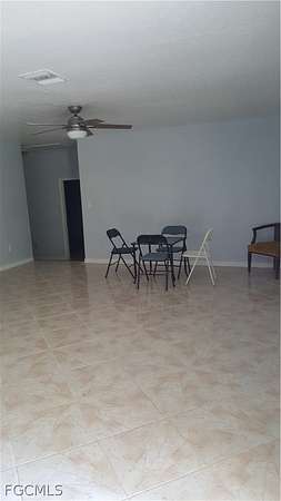 Not just Large, it is a HUGE Kitchen. Designed for entertainment or large family gatherings with adjoining open concept family room accented with recessed lighting plus 2 exits to the back yard. Brand New Refrigerator. 4 Bedrooms split plan. Imagine TONS of storage throughout the home including the bedrooms possessing Double Closets. Special Handicap wheelchair bathroom. Fabulous medicine cabinets with interior mirrors. Triple cabinet in primary bathroom. You will be totally SURPRISED when you go inside to experience the modernized LARGE rooms. Indoor utility/laundry room with direct access to outdoors besides the 2 other exits from the rear of the home. Laundry room has plumbing completed to add an utility sink and has extra electric for having a freezer. Newer permitted roof. Attractive ceramic tile floors make cleaning a breeze. Sit outside in the front screen porch or the back deck porch listening to the birds while watching the squirrels play all perched upon almost 2 acres mostly fenced at the end of the street, thus, limiting road traffic. Let's not forget about the barn in the back with concrete floor and extra high roof with storage area next to the barn plus the separate workshop building. So much area to enhance the grounds to your personal desire. Bring your horses and cattle. Come live and let live without the many subdivision restrictions other areas have. Extremely QUICK access to the Del Prado Extension (Mellow Rd) from Slater Rd or run down to Bayshore Rd or around Pritchett Parkway directly to I-75. Great location. Do not forget about Nalle Grade Park (8350 Nalle Grade Road) that is right around the corner that's great to take the family: Archery Range (Lee County Archers, Inc. holds a 3-D shoot on the third Sunday of each month), Charcoal Grills, Hiking Trails and Pavilion plus Private Events. Private financing available with hefty down payment. Possible exchange for vehicles or other real estate. Are you ready for Country Living?