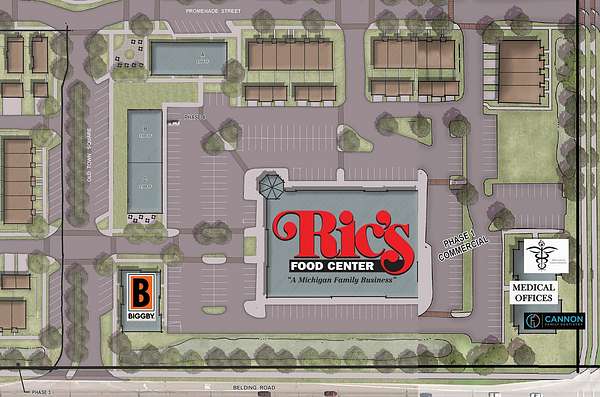 North on Northland Dr East on Belding Rd Town Square Community on the North side of the road