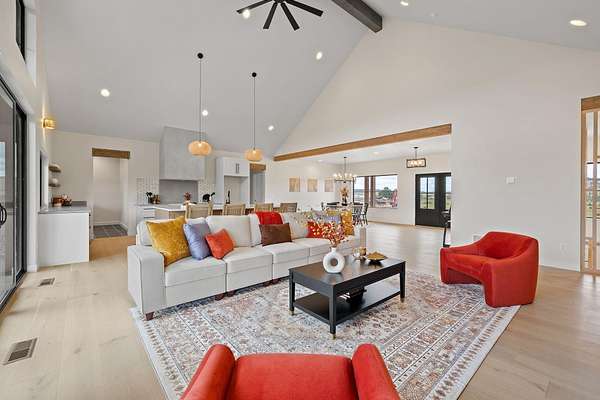 Presented by Bill Phillips with the Real Estate Center of Sturgis 605-490-1358. Home is Finished and Ready to SHOW!! Luxurious custom new construction on 3.69 acres with great views and conveniently located just outside Rapid City close to I-90! This home has it all; featuring 5 bedrooms, 3.5 bathrooms, theatre room, covered outdoor space, exposed beams, beautiful kitchen with large pantry, mudroom, full finished basement, storage areas, finished 3-car garage, huge family area and much more! Spoil yourself in the beautiful master bedroom with soak tub, double vanity, custom zero-entry shower, private laundry room, along with a cozy fireplace. High-end flooring and finishes throughout! If you have lots of toys, shops or outbuildings are welcome! Home is currently under construction and items are subject to change, buyer and buyer agent to verify details contained within MLS document.