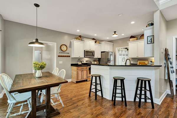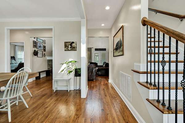 Step inside and you'll immediately notice the freshly refinished hardwood floors and freshly painted interior that bring warmth and light to the main level. The inviting floorplan flows seamlessly from the dining area into the kitchen and living room, creating a natural space for gathering and entertaining. Just off the hall, you'll find a convenient pantry, half bath, and spacious laundry room.