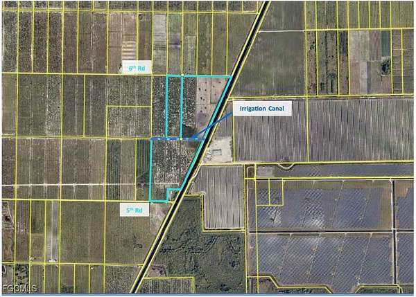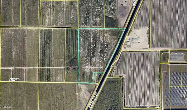 Unique 33.84 +/- acre property at the east end of 5th Road, with more available! There are some viable trees left for personal use, but the majority are older/dead and easy to clear. With frontage on 5th and Goodno Roads, the location could not be more convenient. An additional 46 +/- acre parcel adjoins this property via a canal crossover at the northwest corner. This property is zoned Ag-2, which allows for residential use in addition to agriculture. Besides citrus, there are many thriving farms in the area growing row crops and tropical fruit (lychee, mango, dragon fruit, passion fruit, bamboo etc.). Approximately 1 hour from RSW and 45 minutes from I-75 access, both via SR 29 or SR 80 in Fort Myers. FPL has an easement to access their lines approximately 1/3 of the way from the front of the property, as seen on the aerial. Property is in the Gerber Water District and subject to the Water District tax which is collected by the Hendry County Tax Collector and is used to maintain the roads, canals, and employ security. The roads are private and monitored by a security guard to prevent trespassing.
