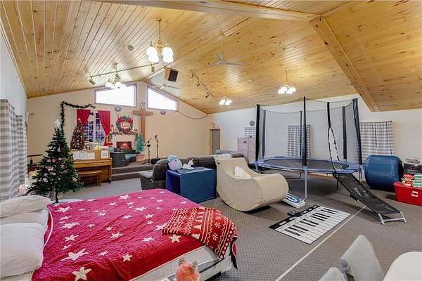 Former Whitefish Alliance Church transformed into this spacious 4 bedroom 4 bath home offering one level living and over 5500 sq. ft. with huge loft ceilings featuring natural woodwork. Added bonus is the 34x60 heated Gymnasium/Man Cave. All of this on 10 acres making for plenty of room for a New or Expanding Home Business within a short distance from the Whitefish Chain of Lakes.