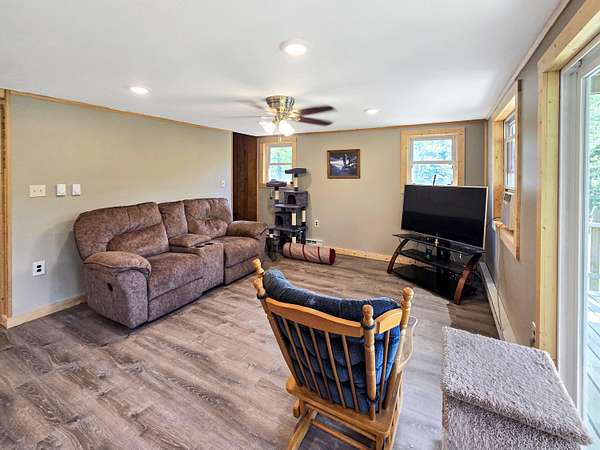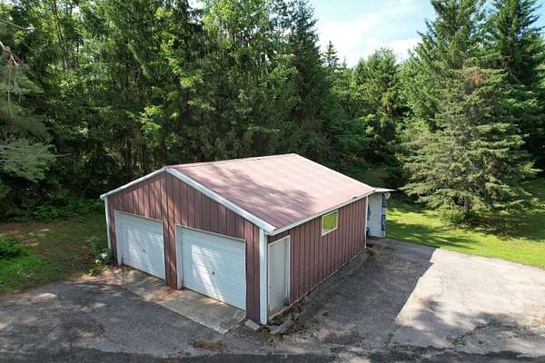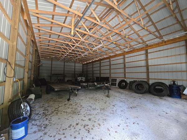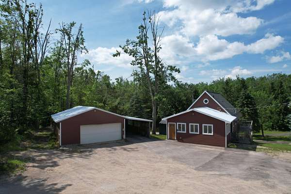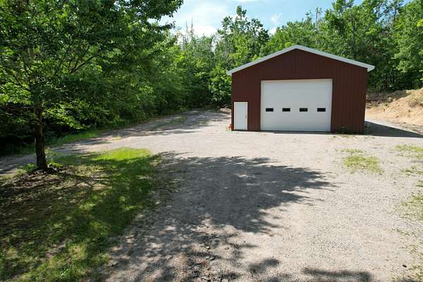 Welcome to this beautiful 10-acre property offering privacy, space, and functionality near the end of a quiet dead-end road. The home features a recently renovated kitchen, entryway, bathroom, and laundry room. The finished lower level adds approx. 750 sq ft of additional living space with a full kitchen, bathroom, and laundry-ideal for guests, extended family, or rental potential. Outside you'll find a heated, insulated 24x32 two-car garage, a second 24x24 garage, and a 30x60 pole barn-all with paved drive access. Trails wind through the property, leading to a custom hunting cabin with solar power and heat. A rare opportunity for space and versatility-schedule your private tour today!