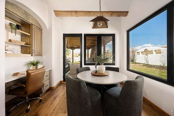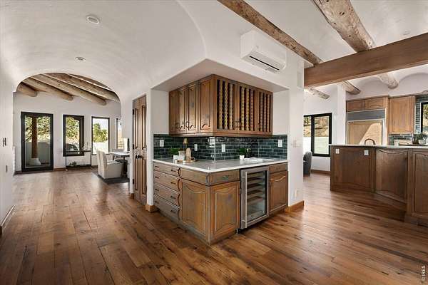 A rare opportunity to own one of Boulder County's most private and architecturally distinctive estates, set on nearly 3 acres directly bordering protected Open Space with unobstructed views that will never change. Extensively remodeled in 2025/2026, this Spanish-inspired retreat blends Santa Fe design with elevated modern finishes across approximately 5,800 square feet. Behind a gated entrance, three enclosed courtyards create a resort-style experience, four secluded patios, all offering seamless indoor-outdoor living, incredible natural light, and unmatched privacy. Inside, soaring 10 to 12 foot ceilings with log beam and latilla detail set the tone, complemented by a rich mix of sandstone, tile, and antique distressed pine and oak wood flooring. Eight fireplaces, custom cabinetry, and stone and quartz surfaces deliver warmth and craftsmanship throughout. The upper main level features a beautifully updated kitchen, multiple living and dining spaces, a solarium, and a private guest suite with its own kitchen and bath, ideal for multigenerational living or long-term guests. The main levels expand the lifestyle with a four car garage with copper clad doors, multiple offices/rooms, game and hobby spaces, sauna, and a secure walk-in safe room. The primary suite is a true escape, complete with a private library, hidden storage, spa-inspired bath with steam shower and soaking tub, and a dedicated jacuzzi and workout room. Built with reinforced concrete & steel, this home offers exceptional durability, fire resistance, and efficiency, complemented by in-floor heating, and whole house fan, this property delivers both peace of mind and enduring quality. Step outside to direct access to City of Boulder open space that extends over hundreds of acres to the Marshall Mesa trail head & experience the perfect balance of peaceful isolation & convenience, just minutes to Boulder, Denver, and Golden. Properties with this level of privacy, views, and proximity are rarely available.