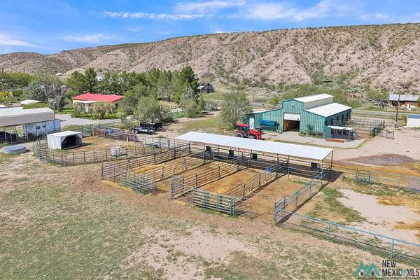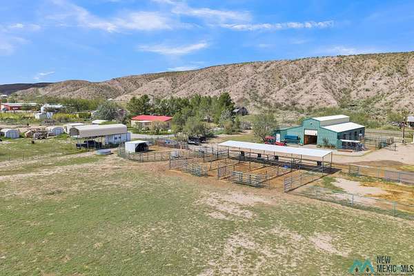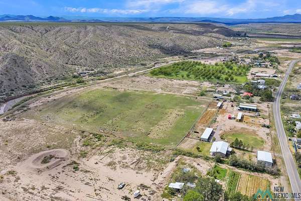 This exceptional +/-11.56-acre farm is located in the peaceful valley of Cuchillo, New Mexico, just 16 miles from Truth or Consequences and 14 miles from Elephant Butte. The property features a beautifully upgraded manufactured home on a permanent foundation, complemented by an oversized RV shop and a spacious horse barn with indoor stalls, hay and equipment storage, a tack room, and a bathroom. Additional amenities include covered outdoor horse stalls, covered livestock pens, irrigated farmland, and, best of all, an RV hookup. Both domestic/livestock and irrigation wells are on-site, with approximately 10.5 acres of underground irrigation rights included in the sale. Whether you seek a working farm, equestrian retreat, or a peaceful country lifestyle, this property offers it all.