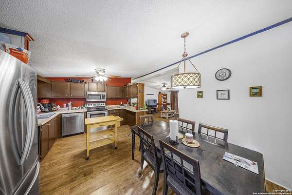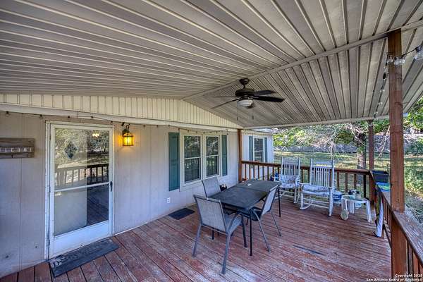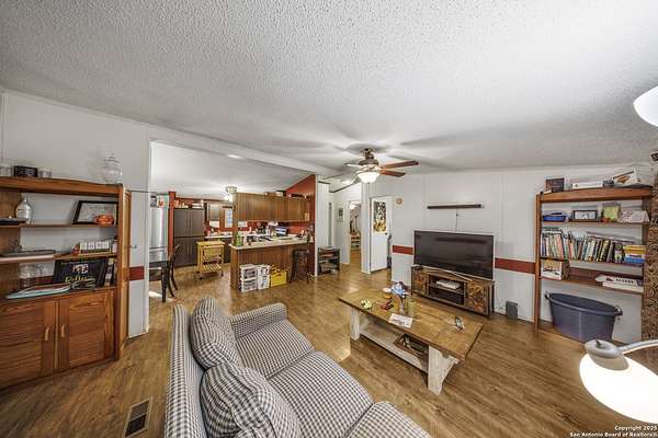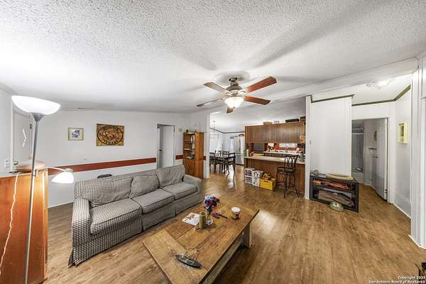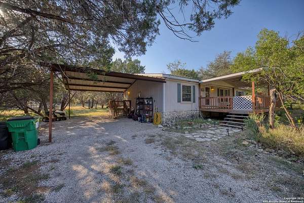 Discover the potential of this spacious 3-bedroom, 2-bath home set on 1.53 acres just one mile from the lake and a short ride to the Cranes Mill Marina. With over an acre and a half of land, this property offers ample space, privacy, and room, making it an ideal investment opportunity in sought after Canyon Lake. The 1,232 sq ft double wide features a built-on roof, a large covered front porch, a back porch perfect for entertaining, a carport, and a storage unit behind the home. Inside, you'll find a roomy kitchen with abundant cabinet space, perfect for everyday living and gatherings. Recent upgrades include a 9-year-old A/C unit, 9-year-old stainless steel appliances, 6-year-old waterproof laminate flooring throughout, a 6-year-old 30-year architectural shingle roof, a brand new furnace, new double-pane windows, and a new 40-gallon water heater. Whether you're looking for a peaceful full-time residence, a vacation retreat near the lake, or a savvy investment property with land, this home offers tremendous value and opportunity.