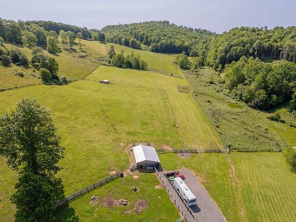 This 90-acre farm in Virginia offers functionality, beauty, and versatility! With frontage on both HWY 58 and a secondary road, this property is easily accessible while offering seclusion and convenience. Fully perimeter and cross-fenced into five large pastures. Great for horses, cattle, or any use. A new well feeds water stations in each pasture, and infrastructure includes a holding pen, loading chute, barn, on-site power, and high-speed internet. Most equipment and property can be negotiated in the sale as well! Two streams, including one that stretches the full length of the property. A well-maintained road system throughout the property ensures easy access. At nearly 3,000 feet elevation, the highest point offers a breathtaking 360-degree view, including a perfect shot of Buffalo Mountain. An ideal homesite with a water station present. The land also features a wooded section with established trails, perfect for horseback riding, ATV use, or recreation. This one really has it all!