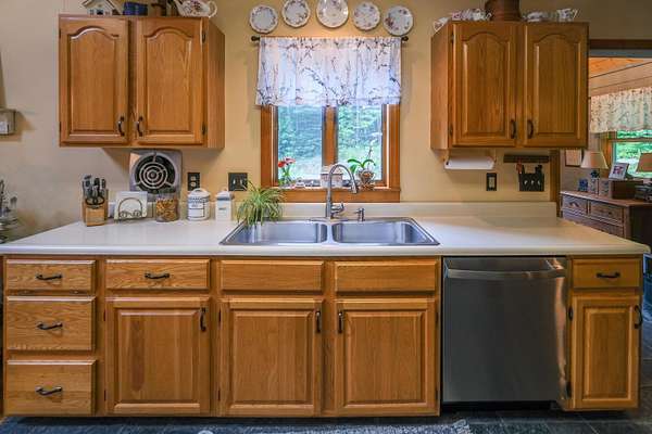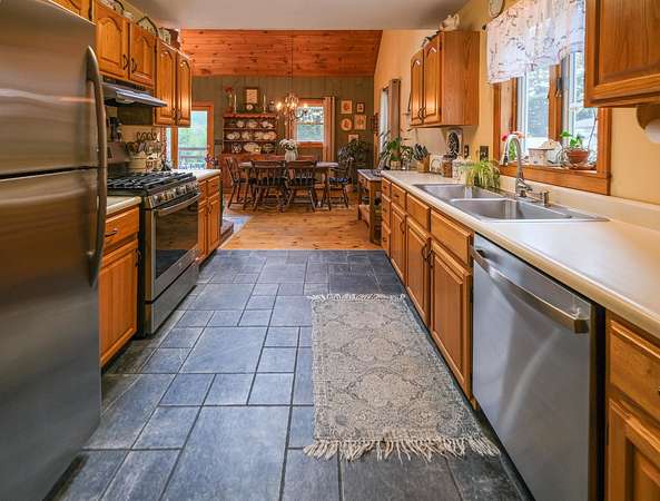Classic New England Salt Box - This charming home is nestled in a hillside neighborhood with wonderful western views and sunsets. Indoors you'll find a tidy mudroom entry with space for all your year round gear. Tiled heated floors lead you to the kitchen featuring newer stainless steel appliances. Vaulted ceilings draw you towards the open dining/living room where you'll be bathed in end of the day sunlight. A bedroom and 3/4 bath round out the main floor. Upstairs you'll find two large bedrooms and a full bath. All good homes should have a family room and this doesn't disappoint. The lower walk out had a cozy spot with a large sectional to watch movies and is perfect for "hanging out" with friends. There is a work out area and a bonus room located on the lower level. This is definitely more than a ski home as there is plenty of outside living space. There is a shady front porch with begs for a rocking chair and a good book. Sun seekers will enjoy the rear deck which faces west and gets plenty of sunshine. Perennial gardens abound and offer color and character all summer long. There is a garage barn that can be used in a myriad of ways... park a car, use the workshop, store your toys... There is also an upstairs mostly finished room that can be your blank canvas. Visit the Okemo real estate community today. Taxes are based on current town assessment.