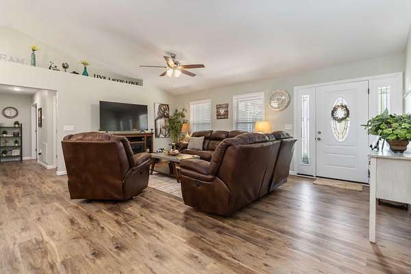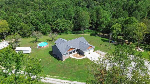Discover your own private retreat with this exceptional 22.36-acre property featuring a 2023-built 3BR/2BA home offering 1,801 sq ft of well-designed living space. Nestled in complete privacy, this home boasts an inviting floor plan, great curb appeal, and a 2-car attached garage. The screened-in back porch provides panoramic views of wooded surroundings and abundant wildlife, creating the perfect space to relax or entertain. The acreage is fenced on three sides, and a stocked pond, mature apple orchard, and 50 amp RV hookup add even more appeal. A storage building and endless opportunities for farming, livestock, recreation, or development make this property truly versatile. Enjoy the seclusion of country living while being less than 6 miles from Laurel Lake access and under 3 miles from I-75 for quick travel. Whether you dream of a hobby farm, a nature lover's paradise, developing your own subdivision, or owning a secluded oasis, this property offers limitless potential in a peaceful setting. Don't miss this rare blend of newer construction, acreage, and convenience!
