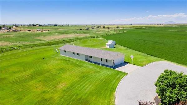 HUGE PRICE REDUCTION!! Imagine mornings spent watching the sunrise over rolling fields. OUTSIDE OF BLACKFOOT is this country living and privacy, has a well-cared for home with many upgrades and is easy to maintain. The 3 ACRES with the home features 2 storage sheds, a cemented in swing set and basketball standard, with room for any outdoor family activities. The spacious home provides room for family gatherings, hobbies, or a quiet retreat after a day working outdoors. Enjoy 5 big bedrooms and 2 full baths, a nice great room, and storage spaces. 2 convenient storage sheds outside for the lawnmower and tools. This home sits on a quiet county paved road, just 20 min west of Blackfoot. With its blend of open land and thoughtful features, this property offers the freedom to create a lifestyle that suits your dreams--whether that's gardening, small farming, raising animals, or simply savoring the peace and beauty of rural Idaho. Don't miss the chance to make this unique ONE-OF-A-KIND setting your own sanctuary. There is a shared irrigation agreement for sprinkler pipe use. A new survey outlines all the boundaries nicely.