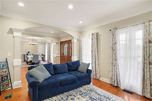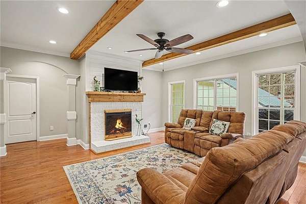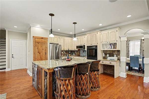 Privately set on an expansive nearly 7 acre estate, this Cape Cod-inspired residence offers a rare blend of architectural elegance, resort-style amenities, and serene seclusion. Designed for elevated living and effortless entertaining, the home delivers a sophisticated yet warm atmosphere with exceptional attention to detail throughout. The owner's retreat is a sanctuary of comfort, featuring a modern design, spa-inspired bath complete with a custom-designed walk-in closet. The main level offers seamless flow with an open-concept living design, highlighted by vaulted ceilings, custom stair lighting, and refined finishes. The gourmet kitchen is a showpiece, appointed with custom stone surfaces, double ovens, pot filler, walk-in pantry, under-cabinet illumination, as well as designer recessed lighting-ideal for both intimate gatherings and grand entertaining. Upper-level living spaces provide flexibility and privacy, including multiple lounge areas, a private study nook, and a spacious full bath, perfect for work-from-home or guest accommodations. Outdoors, the estate transforms into a private resort. Enjoy a 40,000+ gallon luxury swimming pool, complemented by a fully equipped pool house with full bath, outdoor kitchen, and an oversized 10-person spa-ideal for entertaining year-round. Additional features include a three-stall barn, oversized workshop with power, and a pole barn designed to accommodate a motorhome, camper, or luxury recreational vehicles. Surrounded by nearly seven acres of tranquil, landscaped grounds, this property offers privacy, versatility, and prestige, all while remaining conveniently located. A rare opportunity to own a luxury estate with endless lifestyle possibilities awaits! Schedule your in person experience tour today!!