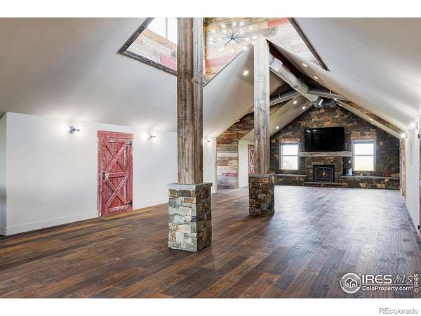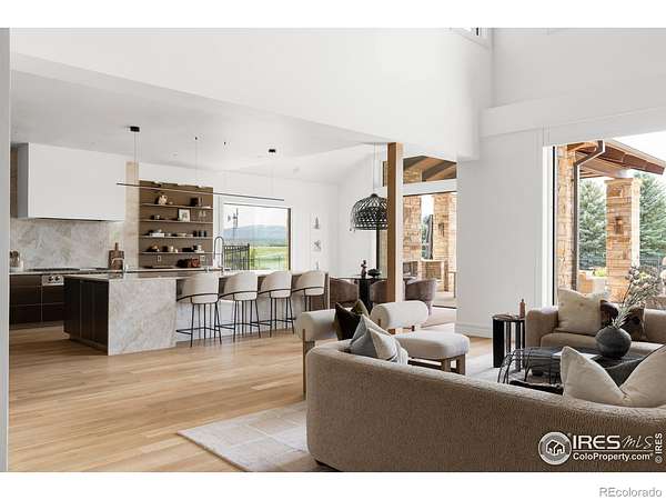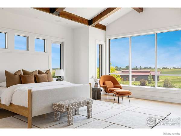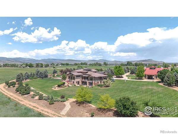 Set on 40 private acres with panoramic views of the Rocky Mountains, Longs Peak, and the Flatirons, 6880 Saint Vrain Road is a reimagined Colorado estate where privacy, natural beauty, and luxury converge. Gutted and remodeled in 2024, this exceptional compound includes a 10,801 SF main home, a 4,658 SF modern barn conversion, and a 4,950 SF second barn, plus a pool, spa, pond, waterfall, fire pit, tennis court, outdoor kitchen, multiple patios, and valuable water rights. Zoned for horses, the land offers ample space for future stables, pasture, or agricultural use. Inside, thoughtful design meets dramatic scale with vaulted ceilings, wide plank floors, exposed beams, and oversized windows creating a warm yet elevated ambiance. A floor-to-ceiling stone fireplace anchors the great room, which flows into a chef's kitchen with Wolf and Miele appliances, a waterfall island, and walk-in butler's pantry. A breakfast nook captures iconic Flatirons views. The main level also includes a formal dining room, lounge, office, oversized four-car garage, pool equipment room, mudroom, and laundry with dual washer and dryers. Upstairs, the primary suite is a private retreat with a fireplace, balcony, soaking tub, and zero-entry steam shower, while three additional en-suite bedrooms and a second laundry room provide comfort and convenience. The lower level is a full height walk-out level with substantial natural light and functional living spaces. This level includes a wet bar, wine cellar, theater, gym, guest bedroom, and a one-bedroom suite with full kitchen, living room, bathroom, and patio. The converted barn features a commercial-grade kitchen, vaulted entertaining space, fireplace, bathroom, and oversized garage doors that open to the outdoors. The secondary barn provides soaring ceilings and flexible potential for equestrian use, a workshop, or creative pursuits. Just 20 minutes to Boulder, 10 minutes to Longmont, and one mile from the shops and restaurants of Hygiene.