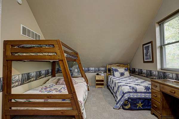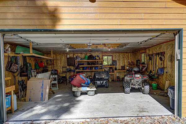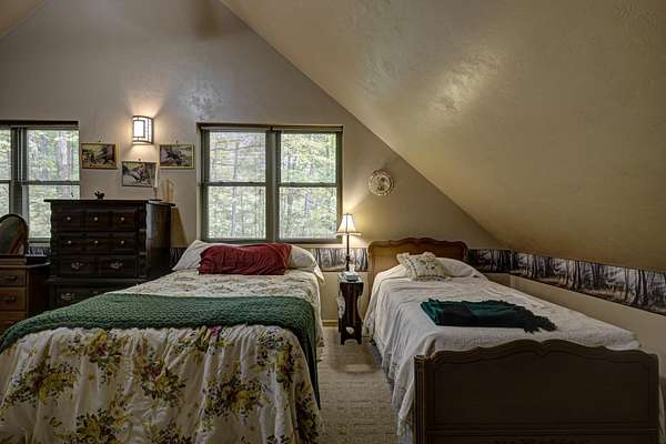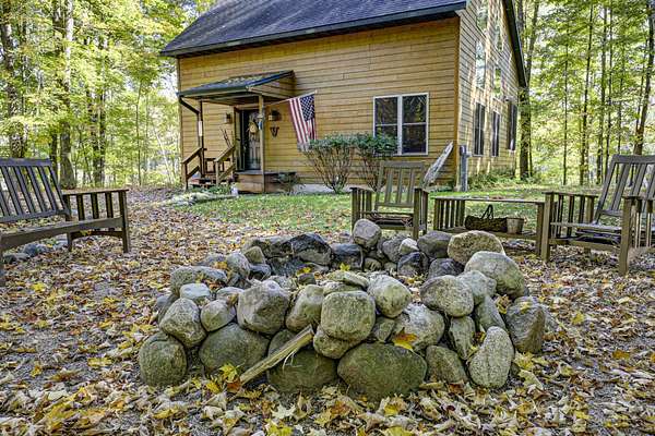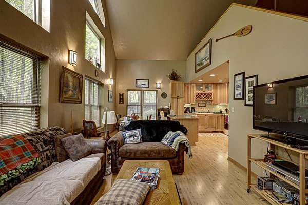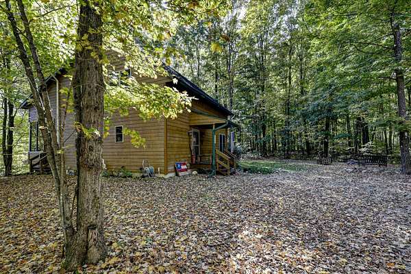 Chalet Style Cabin and Dream Retreat offering 100 feet frontage on Little Long Lake encompassing just under 5 acres. Beautifully crafted Cabin, completely furnished offers perfect blend of rustic charm and modern comfort, whether you're seeking a peaceful year round residence, a seasonal escape, or a high potential vacation rental, this property delivers an exceptional lifestyle surrounded by nature. The 1,568 square foot Chalet welcomes you with vaulted ceiling, open concept design. Step inside and be greeted by a warm, inviting interior featuring engineered wood floors and rich oak cabinetry that complement the natural surroundings. Spacious great room is bathed in natural light from oversized windows that frame stunning views of the forest. Kitchen is outfitted with quality oak cabinetry, ample counter space, and modern appliances, offering both style and functionality. Property backs to the National Forest. Excellent fishing, Private Lake, ATV/UTV Trails. This has it all.