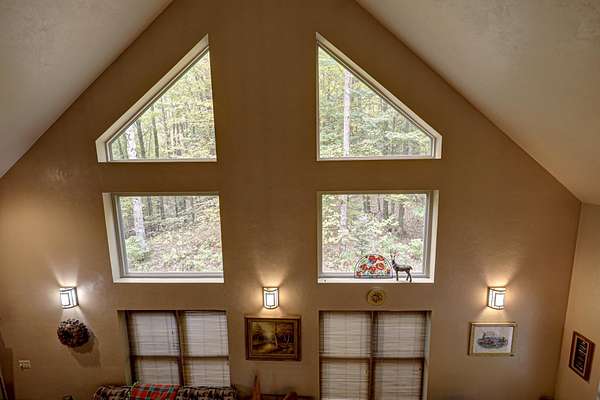 - Cathedral Ceilings, Ceiling Fans, High Ceilings, Main Level Primary, Vaulted Ceilings