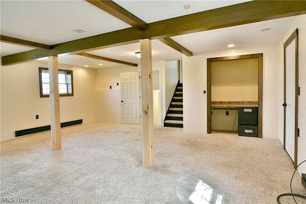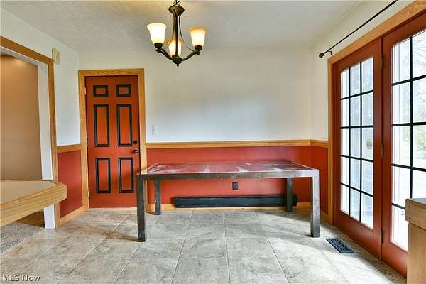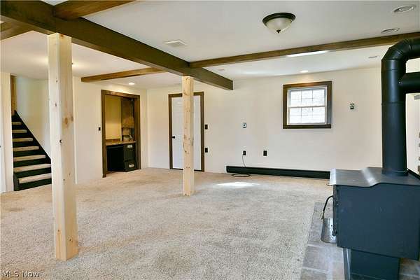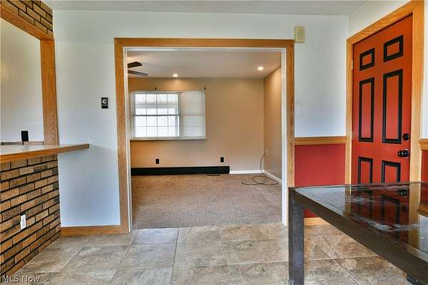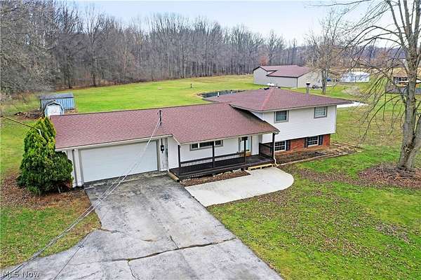 It's time to put some Spring into your step and what better way to kick off the year than this move-in-ready Lordstown split level! This impressive home finds no less than four levels of finished living space, creating a surprisingly spacious package with attractive looks throughout. Beckoning you closer with its covered front patio, the home is ready for the sunshine as it continues with an ample rear deck and great backyard views that include a nearby pond and scenic, woodland tree line. Inside, a welcoming and carpeted living room sets the tone as the tiled walkway continues into the immersive kitchen; pairing rustic brick accents with the natural wood cabinetry. Eat-in dining looks on, taking advantage of its French doors that spill sunshine inside as you enjoy each meal. Up to the second floor, three inviting bedrooms offer hardwood styled flooring as they are accompanied by a deep-set full bath and its handsome, dual vanity. Down below, a must-see family room includes a wood burning fireplace, prominent brick mantle and overhead truss work. A log filled walk-out keeps winter stocking a breeze. Meanwhile, down at the fourth, basement level, an additional bonus room joins a full lower bath and nearby laundry services.