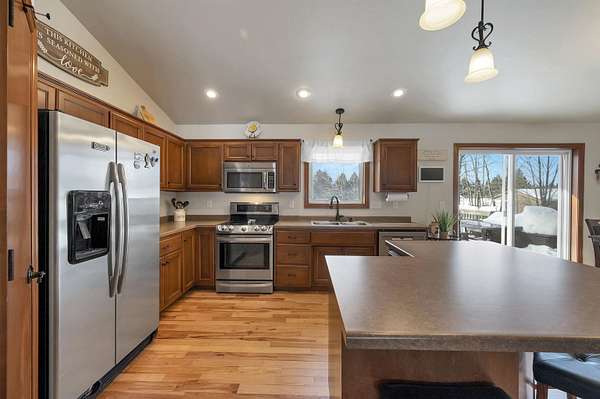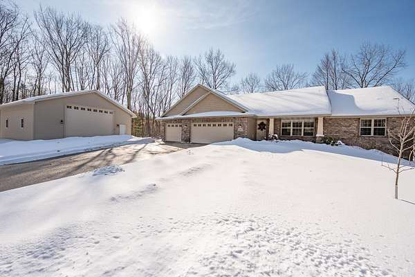 Beautiful split-bedroom ranch situated on 1.5 sprawling acres in the well-desired town of Little Suamico. This 4-bedroom home features an airy, open floor plan highlighted by newly stained wood flooring and a large kitchen with a walk-in pantry. The spacious primary suite offers vaulted ceilings, a large walk-in closet, and a private ensuite with dual sinks for convenience. Downstairs, the finished basement adds a massive rec room, a fourth bedroom, a half bath, and a versatile flex space. Basement also features a separate climate control for extra comfort. The property also features a detached 30x30 garage with an oversized 12x16 door, providing ample space to accommodate all of your recreational vehicles or additional vehicles.