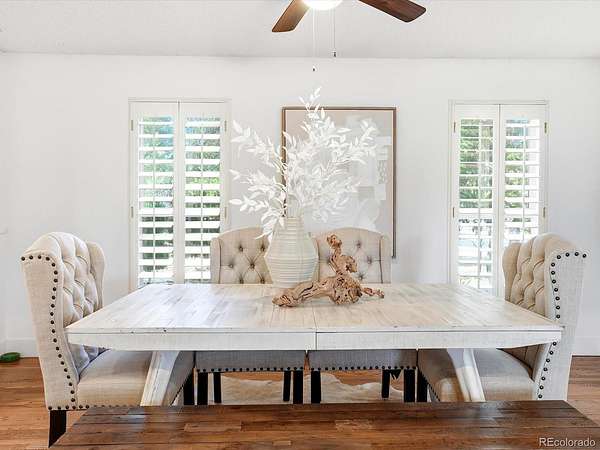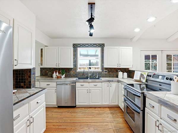 NO OPEN HOUSE 4/18 A serene escape where possibility meets tranquility. Nestled in the highly sought-after Foxfield neighborhood, where properties seldom come to market, this expansive 4-bedroom, 4-bathroom residence offers over 4,000 square feet of pure potential on a private 2+ acre canvas. A sprawling front yard greets you. Here you'll be able to take in mountain views and unforgettable sunsets against the Colorado landscape. Mature trees and lush greenery provide both beauty and seclusion. Step inside to discover a thoughtful floor plan offering distinct spaces for every need: formal dining for gathering, a dedicated living room anchored by a cozy fireplace for relaxation, and an office for quiet focus. The kitchen flows effortlessly into the entertaining areas, with double doors leading to your back deck, bathed in morning sunlight and the perfect place to sip your coffee while soaking in the tranquil surroundings. Retreat to the spacious primary suite, a peaceful sanctuary featuring a built-in desk and two generous closets. The primary bathroom pampers with a soaking tub, and dual vanities. The main level is completed by a sun-drenched sunroom that invites the outdoors in, a convenient laundry room, two additional bedrooms, and a full bathroom. Descend to an entertainer's dream: a walkout basement with a gas fireplace anchoring this versatile space, complemented by an additional bedroom, full bathroom, and ample storage. With horse privileges, a 2-car attached garage, and a remarkable 4-car detached garage featuring workshop space, this property accommodates every passion. More than a residence, it's where your vision takes shape. Transform it into your horse haven, creative studio, automotive sanctuary, or tranquil escape. This Foxfield gem delivers the space and flexibility to build the life you envision.