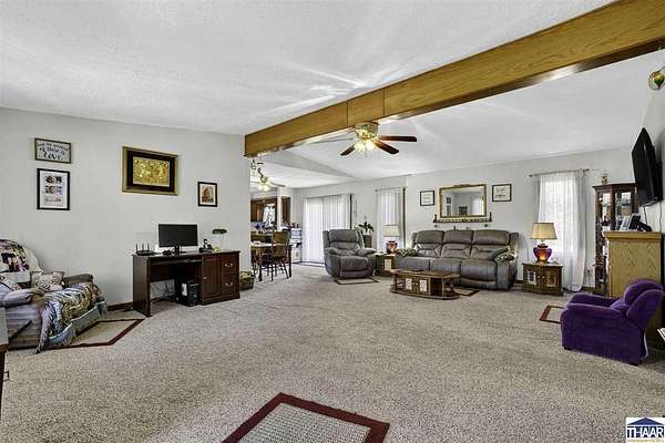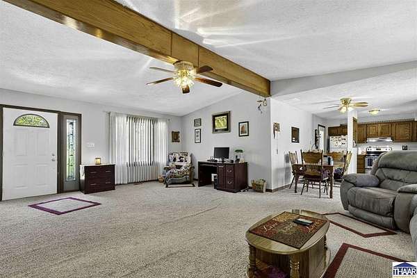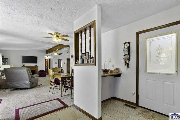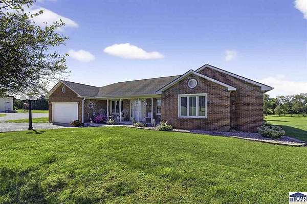 Back on the market at no fault of the sellers. 9.5 acres of country living at its best. Step inside this full brick ranch with amazing country views but still only 15 mins from I-70 and 20 minutes to town. This 3-bedroom, 2 bath home with an open kitchen, dining and living room has an updated roof, geothermal furnace in 2020, new vinyl replacement windows in 2016, interior paint within the last few years. The front covered porch welcomes guests inside the home. There is a 2-car attached garage along with a 3-car detached garage/workshop that's heated. Don't forget to stop by the 36x60 pole barn/man cave that is finished with its own full bathroom. Perfect size for your collectibles or family reunions and get togethers. Also on the property is a 12x16 storage shed. Come enjoy the front porch and see what this home has to offer.