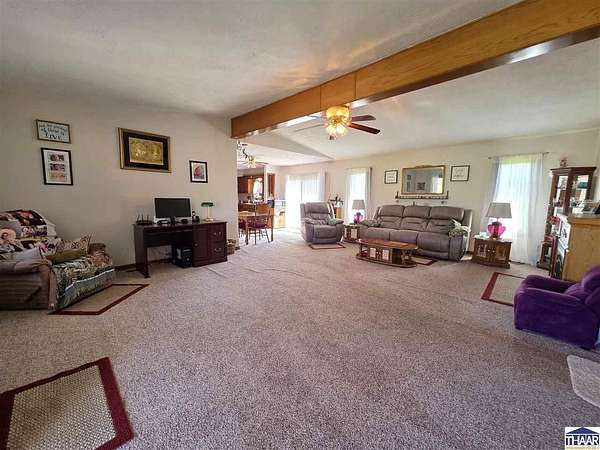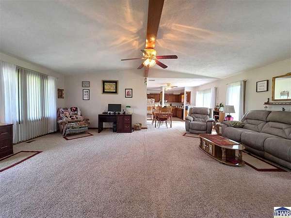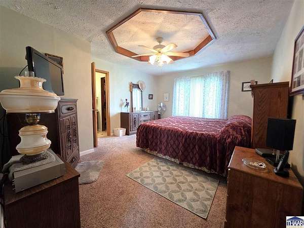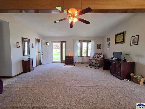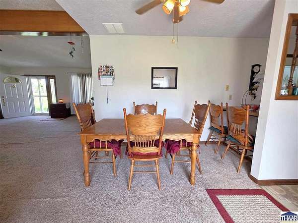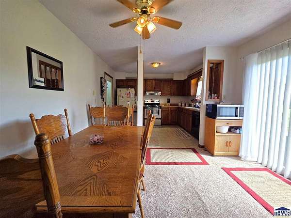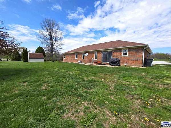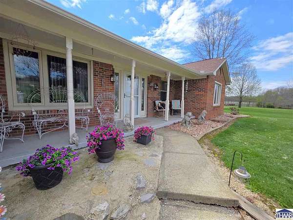 Proudly owned and loved by the same owners for the past 27 years, this is your rare opportunity to enjoy the best of country living with the convenience of modern utilities on this 9.5-acre property! The home is serviced by city water—no well maintenance required—and is located within the UDWI REMC electric co-op. A geothermal furnace (installed in 2020) provides energy efficiency, with average electric bills around $250/month (documentation available). and high-speed fiber internet is available through Endeavor, making this property ideal for remote work. This full-brick ranch offers 3 bedrooms and 2 full bathrooms with an open-concept layout connecting the kitchen, dining, and spacious living area. Updates include a newer roof, vinyl replacement windows (Clear View Windows, 2016), and a geothermal HVAC system. The primary suite features a large picture window, walk-in closet, and private bath. Enjoy peaceful country views from the covered front porch—perfect for morning coffee or evening relaxation. This property offers ample space for hobby farming, gardening, or simply enjoying the outdoors. Conveniently located just minutes from I-70 with easy access to Brazil, Terre Haute, Bloomington and every-day amenities. Enjoy the 2-car attached garage, the 3-car detached heated garage/workshop (fuel oil heat; tank included) with 220 electric, built-in cabinetry, and separate meter, the 12x16 mini barn with loft (with electricity and roll-up door: perfect for equipment), or the 36x60 finished pole barn with full bathroom—ideal for events, workspace, or recreational use. This versatile property offers space, functionality, and endless possibilities. Let’s Connect to arrange an in-person tour!