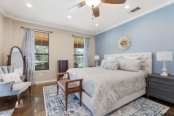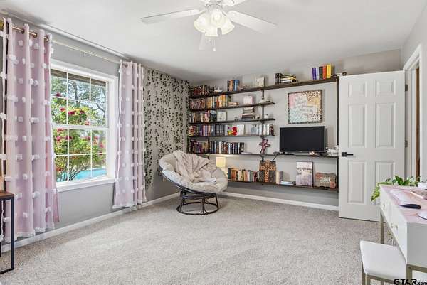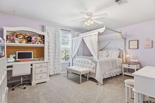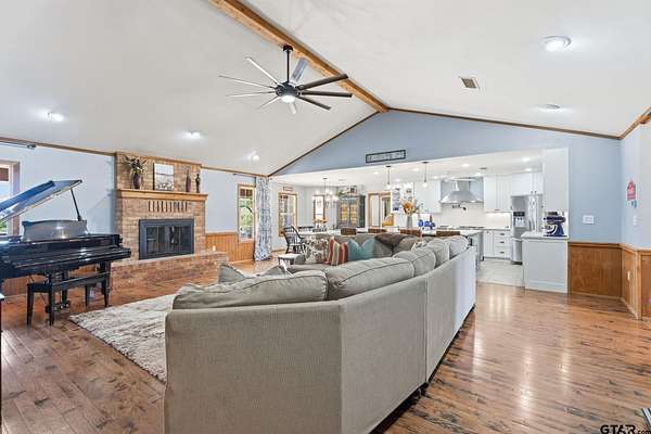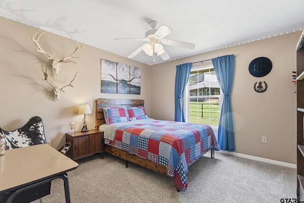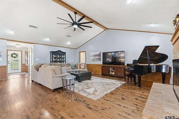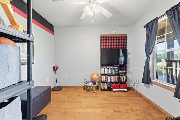 - Blinds, Ceiling Fan, Smoke Alarm, Vaulted Ceilings