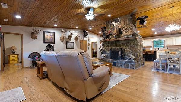 Located just 30 minutes from Poplar Bluff, MO, this 1356-acre +/- property is a hunter's dream. Set up for whitetail and turkey hunting, it features miles of accessible trails, 30+ food plots, and two creeks. The majority of the land is timber, thinned, and managed for optimal wildlife movement. The property borders government ground, providing extra privacy and hunting opportunities. A rustic 4-bed, 2-bath lodge offers a cozy retreat, while multiple outbuildings provide ample storage. Included are blinds, feeders, and equipment, making this a turn-key hunting retreat. With rolling hills, bottomlands, and diverse wildlife habitat, this property is perfect for those seeking an exclusive Ozarks hunting experience. Properties of this size do not come on the market very often, but you have the chance to own land for yourself and generations. Contact us today to schedule a private tour!