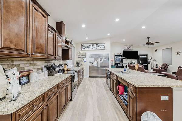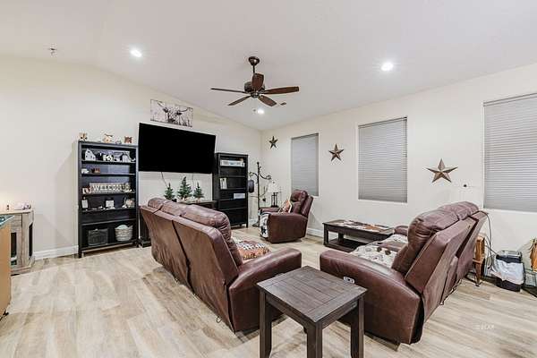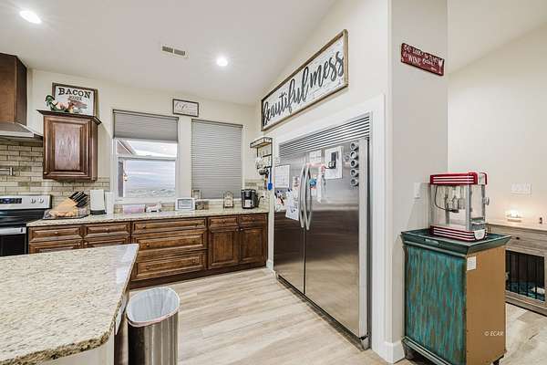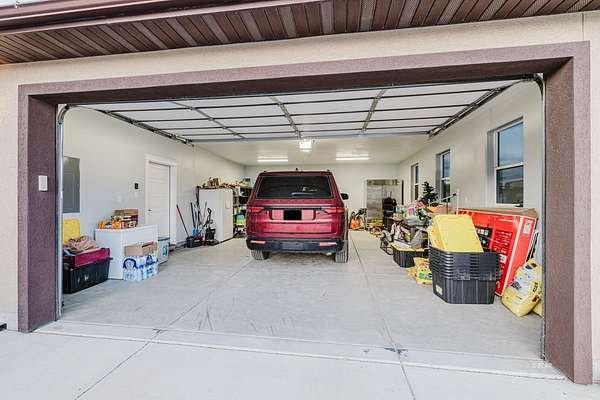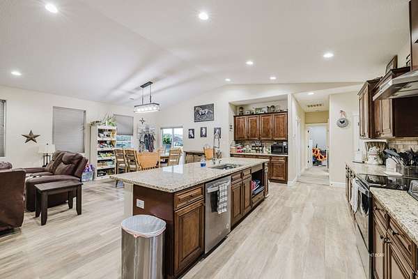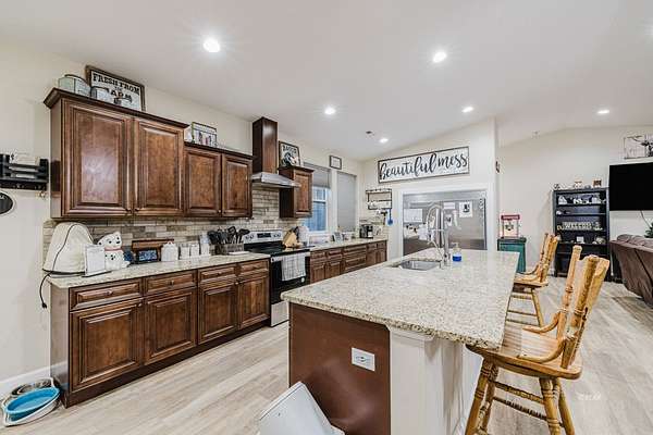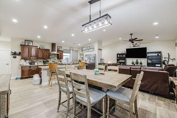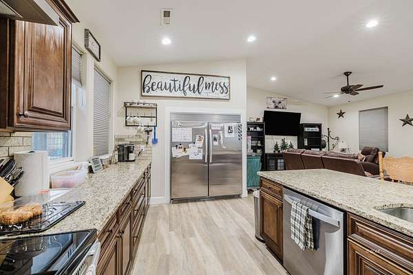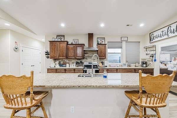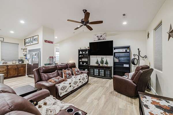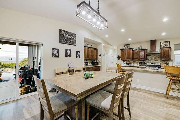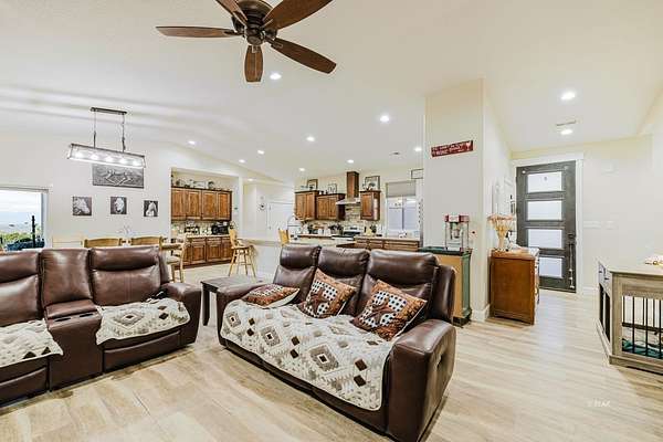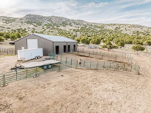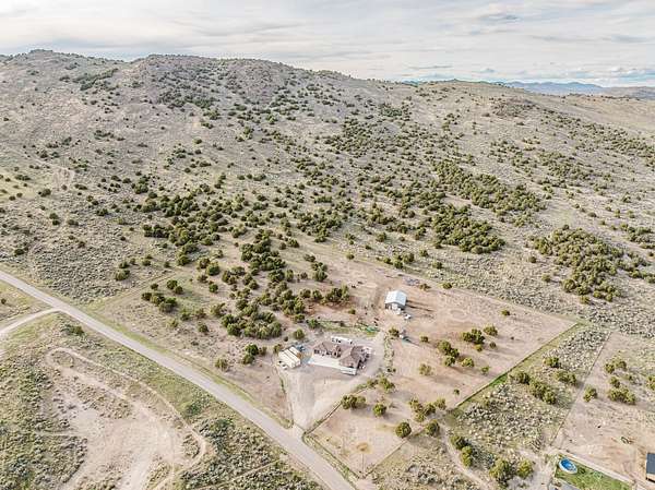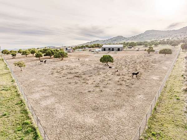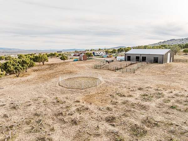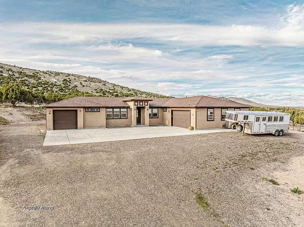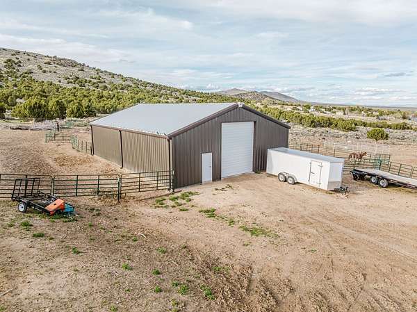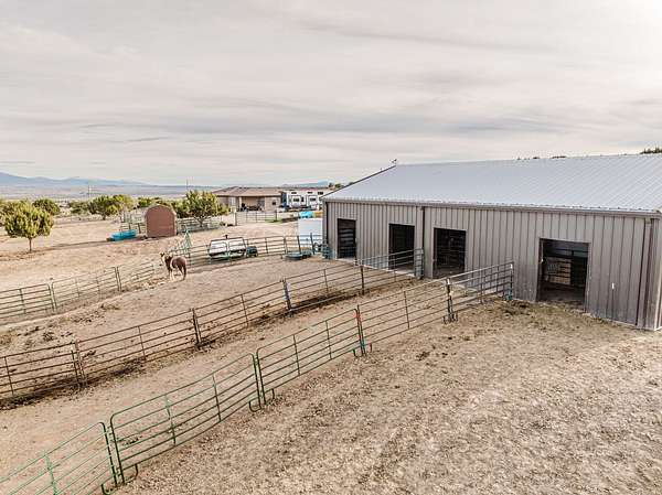 Built in 2020 by Merwin Homes, this stunning property offers the perfect place to call home-blending modern comfort, open living, and peaceful country charm on 10 fully fenced acres with breathtaking views. Step inside to a light-filled, open layout designed for both everyday living and gathering.The kitchen is the heart of the home, featuring a commercial-size refrigerator, cozy breakfast nook, and a spacious walk-in pantry. The living area flows seamlessly, creating a warm, inviting space to relax or entertain.The oversized primary suite is a private retreat with a soaking tub, walk-in shower, and generous walk-in closet. Two additional bedrooms share a full bath. A laundry room leads to a 1-car attached garage, while a separate 2-car attached garage is conveniently located off the secondary bedrooms.Outside, enjoy a covered patio and extended concrete space-perfect for quiet mornings or sunset views. The property is fully enclosed with 6-ft drill steel fencing for durability and security. A 60x40 barn with multiple access points, frost-free faucets, and 50 AMP service is ready for animals, hobbies, or storage. A shed, hitching post, and hot tub complete the property.