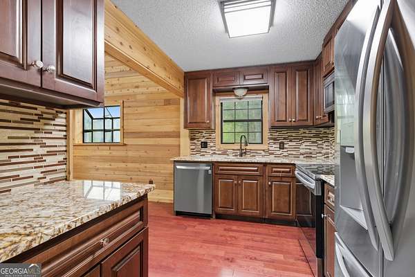 - Dishwasher, Dryer, Range, Refrigerator, Stainless Steel Appliance(s), Washer