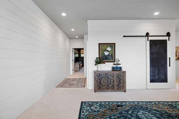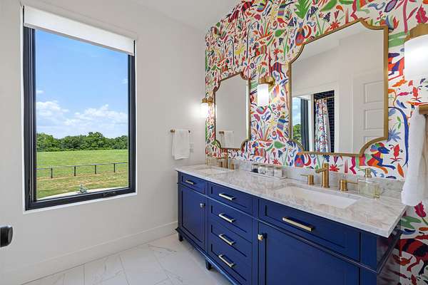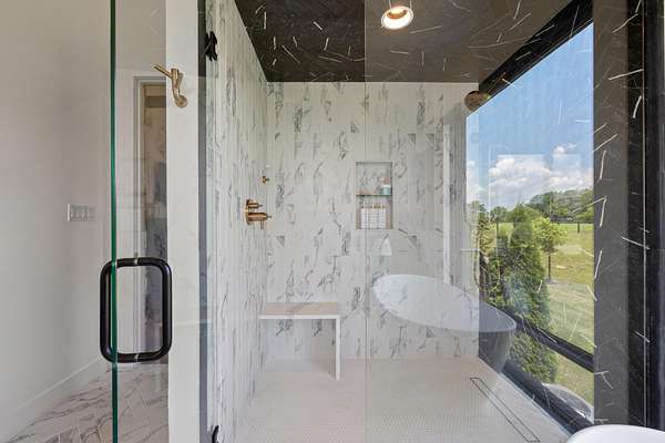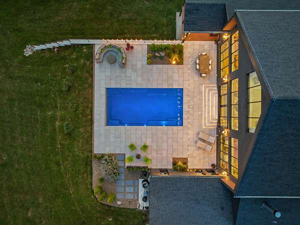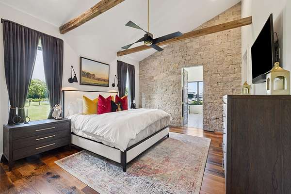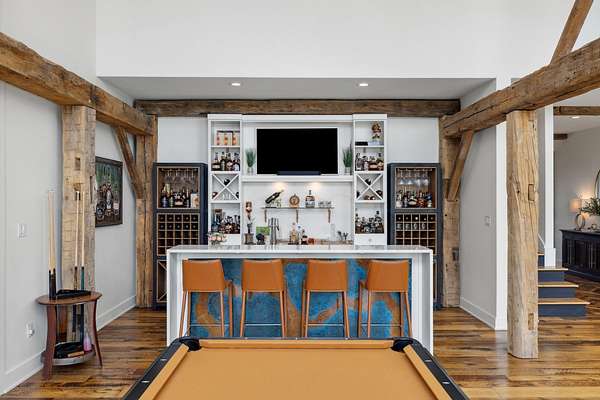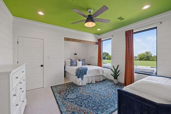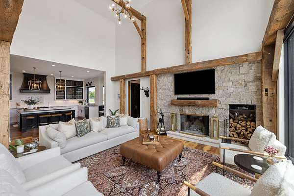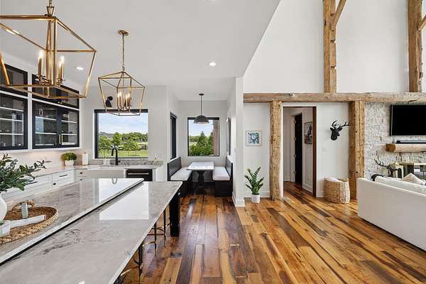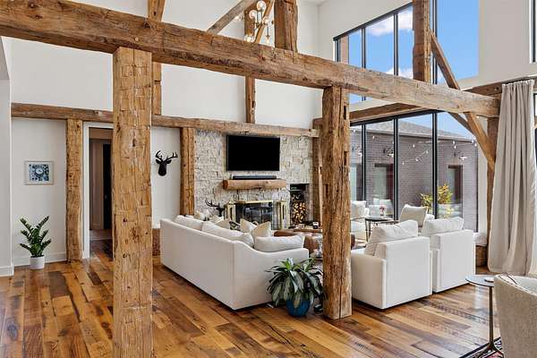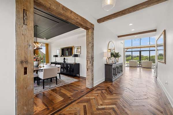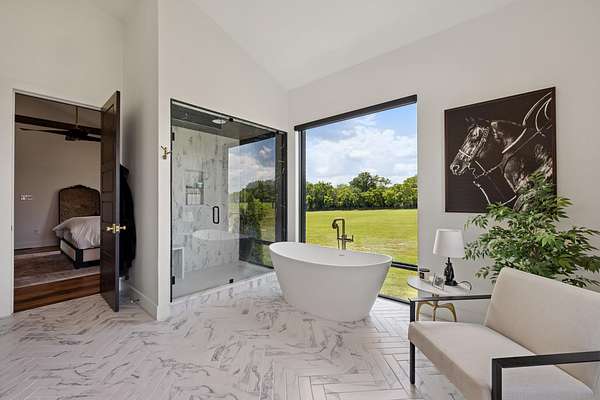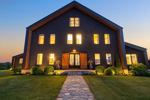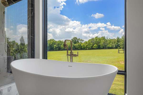 Your dream Kentucky estate awaits. Wake up to panoramic views of rolling pastures, unwind by the pool as the sun sets over your land, and enjoy the privacy of a true countryside retreat. Situated on 10.49 fully fenced acres with classic limestone fencing, this property offers a picturesque setting just minutes from town. Featured in Kentucky Homes & Gardens, this 5-bedroom, 4 full bath, 1 half bath home blends Scandinavian-inspired design with warm, inviting finishes. Expansive floor-to-ceiling glass fills the home with natural light while capturing breathtaking views, complemented by automatic shades. Upon entry, a custom wood herringbone foyer is flanked by a private office and formal dining room. The main living area features a striking fireplace and dramatic wall of glass, flowing seamlessly into the chef's kitchen with an oversized island, built-in breakfast nook, and dual pantries. Additional main-level highlights include a custom bar with kegerator and beverage fridge, a spacious laundry room, and a half bath. Accordion glass doors lead to a screened porch, creating seamless indoor-outdoor living. The first-floor primary suite offers stunning views, a spa-like bath with power shades, and a custom walk-in closet. The second floor includes a built-in bunk room, dedicated movie room, additional flexible living spaces, two bedrooms, and a full bath. The third-floor guest retreat features a private bedroom, full bath, and viewing area. The finished lower level adds another bedroom, full bath, a second family room, and extensive storage-ideal for a home office, gym, or additional living space. Outdoor living is equally impressive with a screened-in porch, grilling area, and a fiberglass pool with automatic cover, lighting, pool bath, and storage. A fully fenced garden includes established blackberry, raspberry, strawberry, and asparagus beds. A spring-fed creek runs through the property, surrounded by black walnut trees and abundant wildlife, and the home backs to a scenic sheep farm for added privacy. Additional features include black brick exterior, Trex decking, geothermal system on the main level, multiple HVAC units with 5-zone app control, whole-home UV air and water purification, dehumidification system, radon mitigation, lightning rods, advanced drainage system, Ring security, and Starlink internet. Adjoining 17.96-acre parcel available. No formal HOA with light restrictions. Furnished option available.