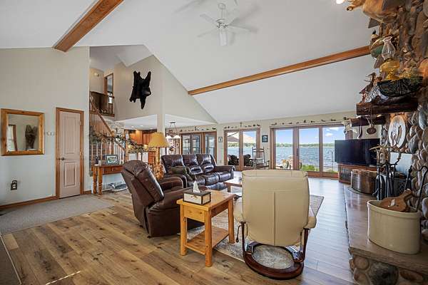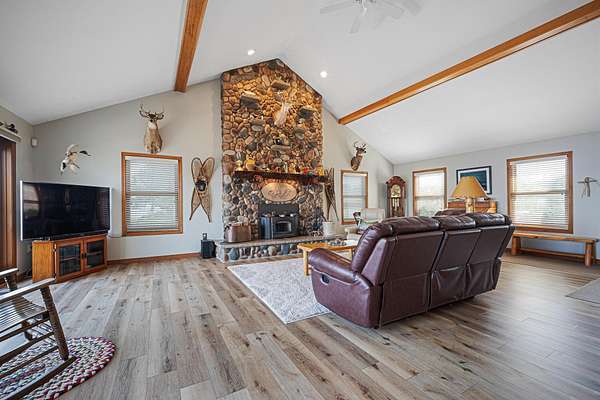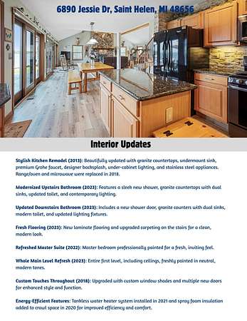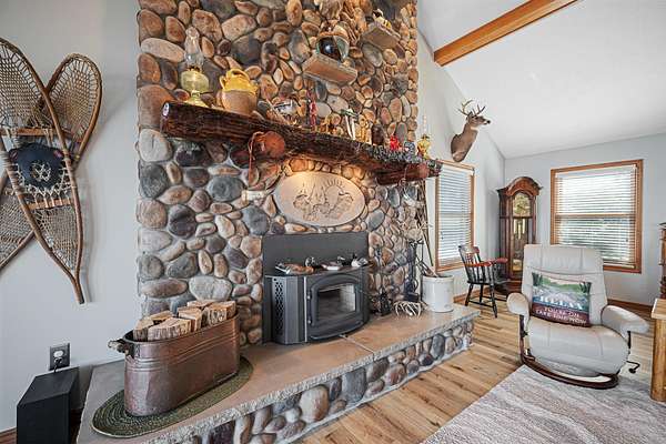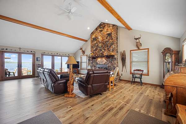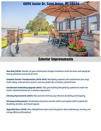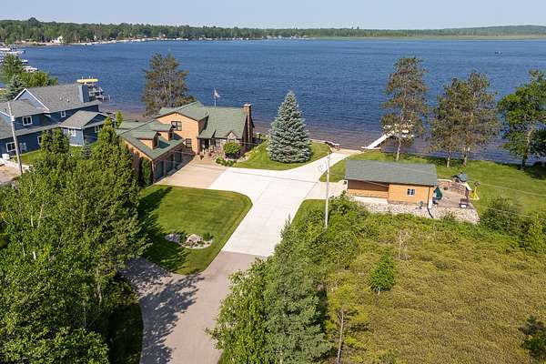 Discover unmatched serenity and exclusivity on this private lakefront estate, nestled along Lake St. Helen's coveted third lake. Boasting commanding views of the pristine, undevelopable northern shoreline, this custom executive home offers the ultimate in peaceful lakefront living. Thoughtfully designed and ideally positioned, the residence captures sweeping water vistas and cooling summer breezes off the lake. Set on 500 feet of sandy frontage, the property features a charming adjacent guest house--known as the ''Officers Club''--complete with its own garage space, perfect for storing your side-by-side or watercraft. Enjoy tranquil mornings with the call of loons and waterfowl echoing across the lake, or launch your boat with ease from your private, paved boat launch. The outdoors are equally refined, with a cultured stone seawall, elegant patios, and a brick pizza oven ideal for entertaining family and friends in style. The insulated 3-car garage includes a spacious partially-finished upper level, perfect for a future guest suite, office, or hobby space. Also available separately is an adjacent 47-acre parcel with over 1,300 feet of additional lakefront. This bonus offering includes an insulated, heated pole building with 14-foot clearance, ideal for RV or boat storage, and is complete with three deer blinds for outdoor enthusiasts. Conveniently located within two hours of Detroit, Grand Rapids, and Lansing, and under two hours to Mackinaw City, this unique property is perfectly situated for easy access to both Northern and downstate Michigan.