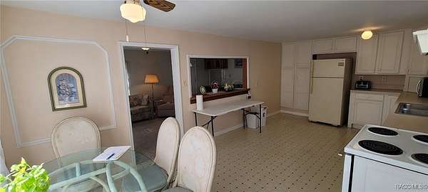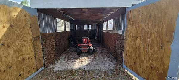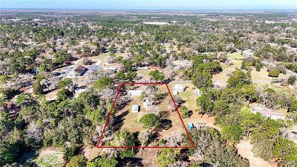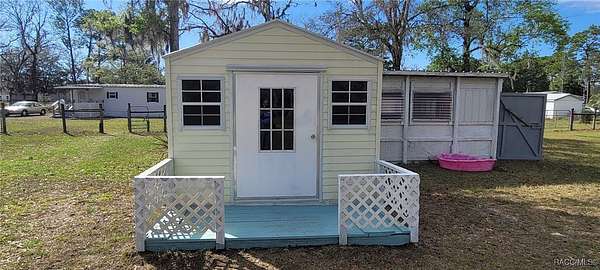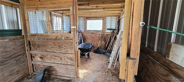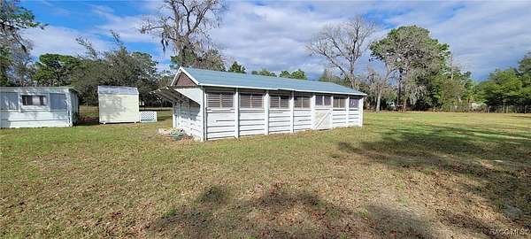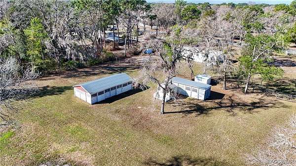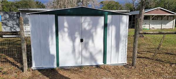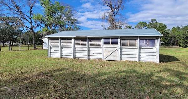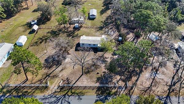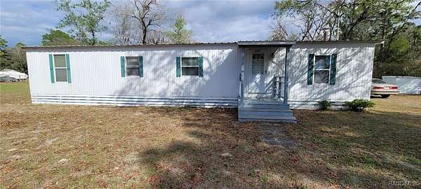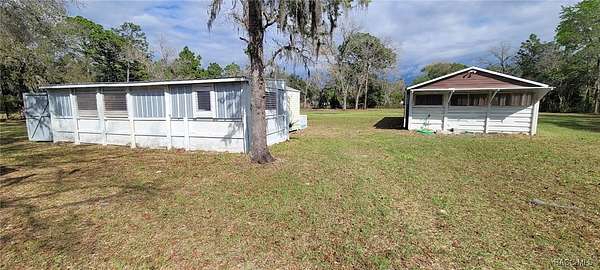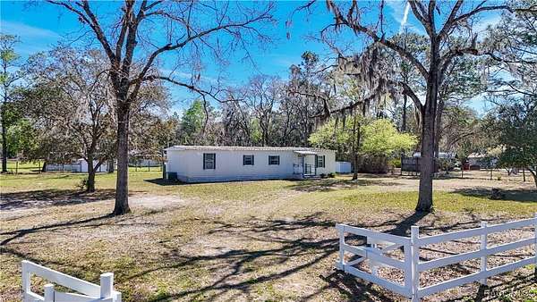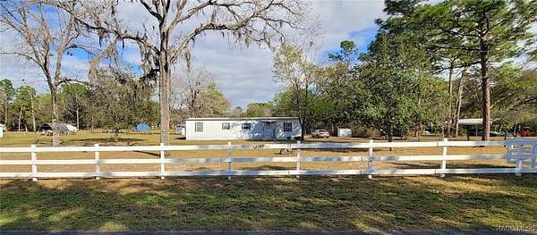 This 3 bedroom, 2 bath, furnished mobile home in desirable Homosassa, FL sits on a spacious 1.89 acre site, fully fenced and cross-fenced, ideal for horses. The property features a 1 stall barn with attached run-in shed large enough for vehicle storage, a separate 4 stall barn with electric and water just outside and 2 other storage sheds. Home features spacious eat-in kitchen with plenty of cupboard/counter space and pass through overlooking the living room with gorgeous, woodburning fireplace. Down the hall you'll find a guest bath with washer hook up, an office, 2 guest bedrooms and a generously sized master bedroom with walk-in closet, full bath and sitting room/flex space with private exit out to the vast back yard. With enough room for an Accessory Dwelling Unit (ADU) this property has great potential for multi-generational living, rental income, or guest house. Approximately 1 hour drive from both Ocala and Tampa and within 3 miles from access to the Suncoast Parkway! Enjoy the peaceful country setting while still being close to local amenities, parks, and outdoor recreation. Call and schedule your viewing today! Previous contract fell through due to buyers home not selling.