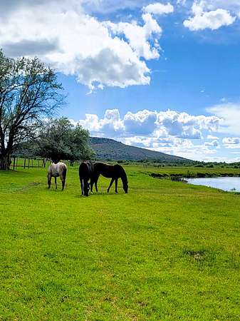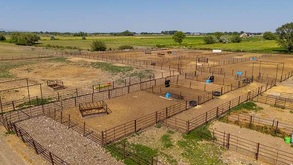This exceptional ranch features two comfortable residences, including a spacious 3-bedroom, 2-bath home and a charming 2-bedroom, 1-bath dwelling, perfect for family, guests, or ranch staff. The property is enhanced by a variety of improvements featuring an impressive two-bay barn complete with stables and generous space for equipment and tack, plus an immaculate workshop with a convenient loft, offering plenty of room for projects and storage. Additional improvements include a detached two-door garage, a large hay shed, multiple sets of state-of-the-art pipe-fenced working corrals, and various other outbuildings. These well-maintained facilities blend comfortable living with practical day-to-day ranch operations and agricultural use.