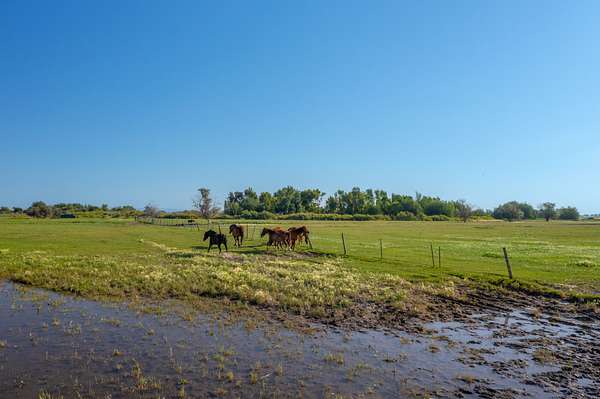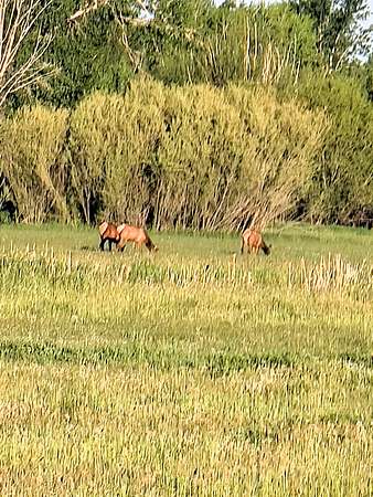 The ranch's crown jewels are its abundant water features. Over four miles of live water weave through the property, creating a haven for wildlife and aquatic life alike. This includes over half a mile of the Bannock Jim Slough, nearly 1.5 miles of the Texas Slough, and just over two miles of the Henry's Fork Snake River (Cartier Slough). In addition, the Texas Slough Canal also traverses through the property, enhancing irrigation and enriching the natural water system. These waterways create lush riparian corridors lined with mature cottonwoods and willows, adding habitat diversity and striking beauty.