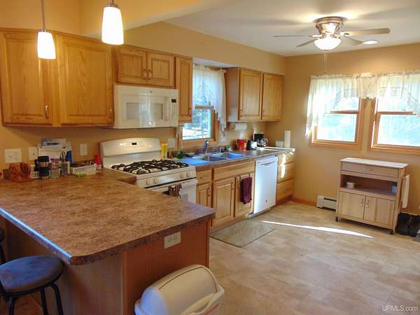 Beautiful 7BR 2BA home with multiple detached garages nestled on approximately 12 wooded acres just one mile north of the peaceful town of Trout Creek in Interior Township of Ontonagon County! This property is a must see as it has so much to offer! The property offers tons of storage having three garages. The 50x22 being the largest offers three different bays. The first bay is 14x26 with a 12 foot door, the second bay is 22x36 and includes a workshop area and wood fired sauna! The third bay behind the garage is 13x33. The 24x24 two car detached garage is the closest to the house. A 14x18 garage was added for additional storage. The original home was built in the 1950's and the newer part of the home was built in 2010. The main level features a welcoming entry, living room, dining/kitchen area, two bedrooms, two full baths, one is off the master bedroom, and main level laundry/office room. The second level of the older part of the house has three bedrooms. (Bedrooms are dated and need some TLC) The second level of the newer part of the home features a huge 21x23 family/rec room and two bedrooms. (There is still some finishing work that will need to be done on this level as well) There is a full dry basement and two separate heating systems. One for each side of the house. The owner will be leaving some items and furnishings behind. If you're in the market for a beautiful home with tons of storage with lots of privacy, you'll definitely want to check this one out! This is the perfect place for a growing family or could be used as an Airbnb. Snowmobile/Atv trail #8 is less then a mile away. Thousands of acres of Ottawa National Forest in the area to hunt, fish, hike or explore! This is a four season recreational paradise area! Come explore all the U.P. has to offer! Call for your private tour of this beautiful property today! NOTICE: All information believed accurate but not warranted. Buyer recommended to inspect & verify all aspects of the property & bears all risks for any inaccuracies including but not limited to estimated acreage, lot size, square footage, utilities (availability & costs associated). Real estate taxes are subject to change (possibly significant), property will be reassessed by the municipality after sale is completed & buyer should NOT assume that buyer's tax bills will be similar to the seller's current tax bills. Taxes are not zero. Subject to land division.