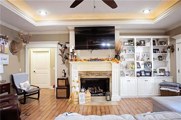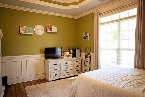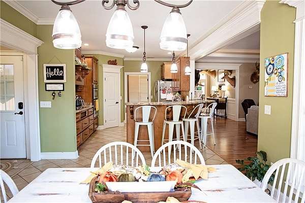 The home is a beautiful 4-bedroom, 3.5-bathroom brick structure, offering ample space for a large family or for hosting guests. The 3.5 baths ensure convenience and comfort, with a dedicated powder room for guests and well-appointed full bathrooms to serve the family and bedrooms. The home features a large kitchen, all appliances included with breakfast area and a formal dining area. The expanded laundry room will even make doing laundry a pleasurable experience! The family room includes a gas fireplace and opens to a covered porch and deck extending the living and entertaining space.