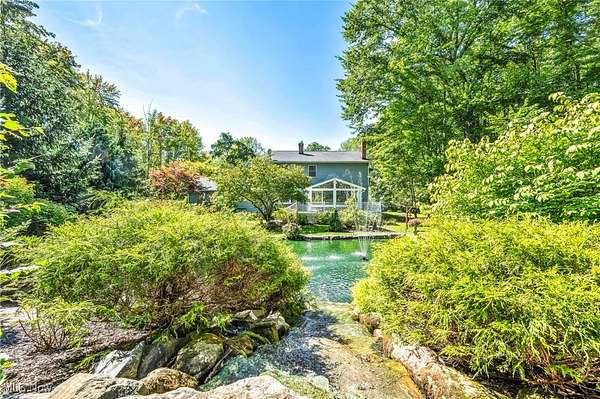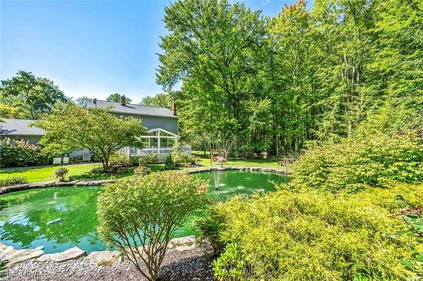 Tucked gracefully at the end of a stately, park-like front yard, this timeless colonial offers the rare combination of serene privacy and effortless charm-all set on 1.5 acres of tree-lined tranquility. Step inside and feel the calm wash over you. Surrounded by nature, where the sounds of birdsong and rustling leaves replace the buzz of daily life, this home invites you to unwind. The backyard is a true sanctuary, complete with a peaceful pond featuring a waterfall, fountain, and vibrant Koi fish. Whether you're sipping coffee beneath the gazebo or strolling through the woods at the edge of the property, you're fully immersed in nature's embrace. Inside, the home continues to impress. With over 2,200 square feet of beautifully finished living space, every detail has been thoughtfully updated to suit today's lifestyle. The main floor offers a private office, convenient laundry room, and a sun-drenched vaulted sunroom with panoramic views of your backyard oasis. Warm wood and ceramic floors flow throughout the home, anchoring spaces filled with charm and character. The kitchen is both functional and refined-featuring granite countertops, stainless steel appliances, an island, and custom pot racks. It opens to a cozy living room centered around a wood-burning stove, the perfect gathering space during cooler months. Across the hall, a formal dining room sets the stage for elegant entertaining. Upstairs, the recently updated bathrooms enhance the home's move-in-ready appeal, while the finished lower level-nearly 475 additional sqft-offers a full bar, fireplace, and space to play, lounge, or host. Major system updates have been made with peace of mind in mind, including newer water storage tank and well updates (2024), newer roof (approx. 8 years), AC (approx. 3 years), hot water tank (approx. 4 years), sunroom and deck (approx 4 years), and bathroom upgrades. The current owners are ready to begin their next chapter-and this stunning retreat is ready for yours.