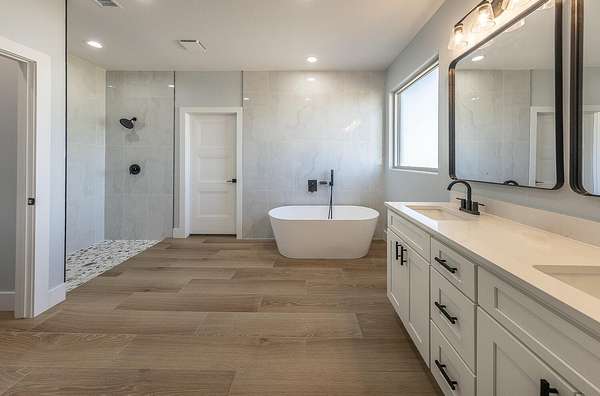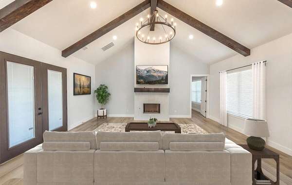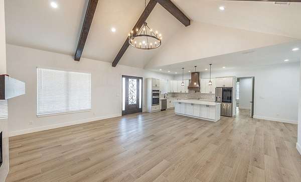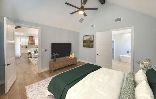 - Cathedral Ceiling(s), Ceiling Fan(s), Chandelier, Double Vanity, High Ceilings, Kitchen Island, Open Floorplan, Pantry, Quartz Counters, Safe Room, Soaking Tub, Walk-In Closet(s)