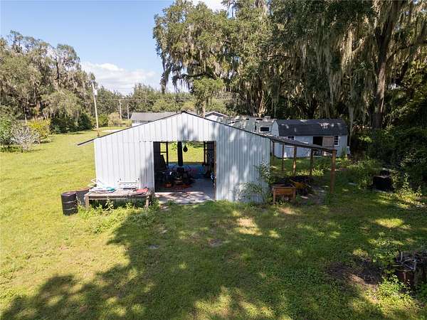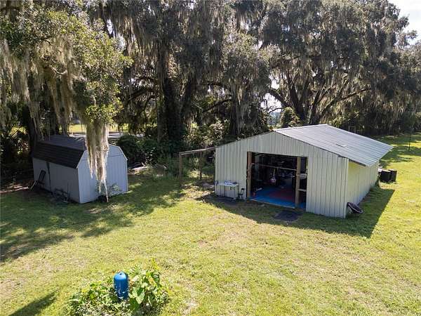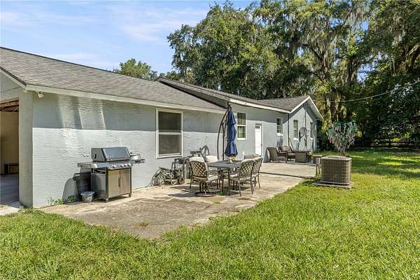 Affordable mini-farm on A-1-zoned 2 acres in NW Marion County. Solid concrete block 2BR/1BA with low-maintenance LVP flooring throughout. Property is fully fenced and animal-ready with a goat barn plus a second barn with concrete floor; easily adapted to horse stalls. Beautiful setting with ancient oaks and a producing orchard of citrus, grape, fig, lemon, pear, and navel orange. Per seller: roof approx. 13 years, HVAC 2022, well pump 2021. Quiet country living with room to garden and keep chickens, pigs, goats, or horses. No HOA and no deed restrictions. About 11 miles to the World Equestrian Center. Buyer to verify zoning, uses, and measurements.